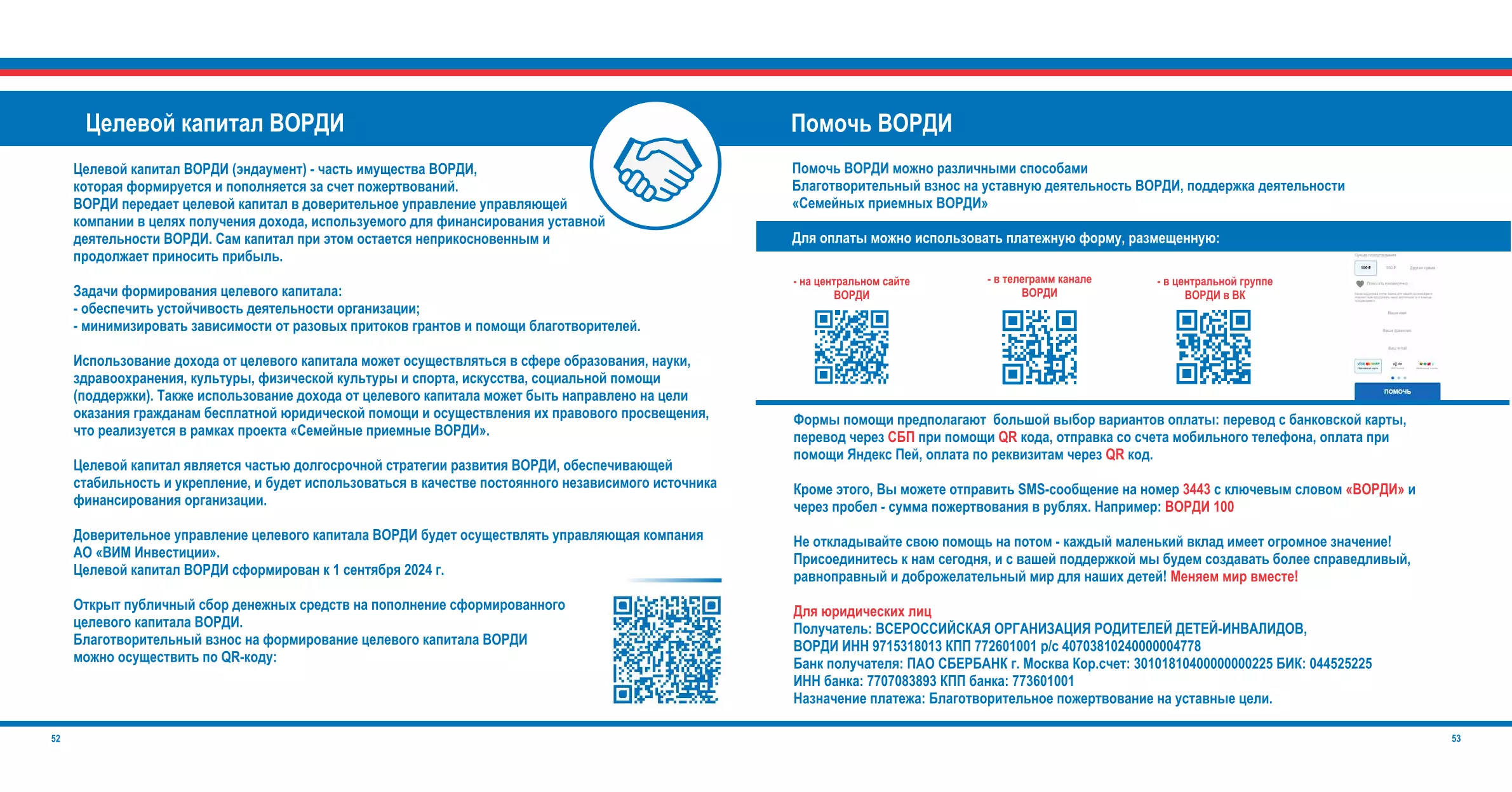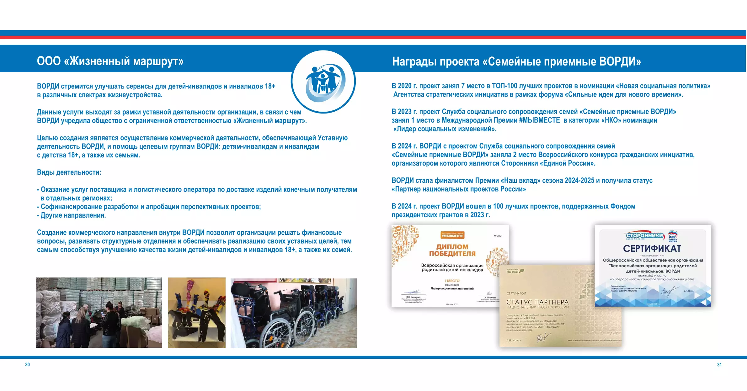 В своей деятельности ВОРДИ не собирает средств на лечение, реабилитацию, технические средства реабилитации, лекарственные препараты и т.д. и не выдает их людям.
