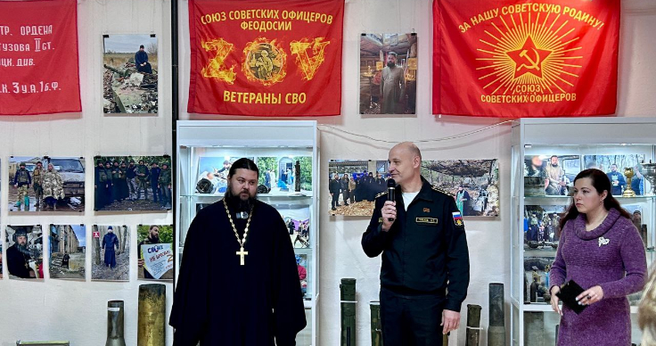 Выставка создана по благословению епископа Феодосийского и Керченского Илариона при участии Союза советских офицеров и ветеранов боевых действий Феодосии и Восточного Крыма. На открытии выставки настоятель храма Архистратига Михаила в Феодосии иерей Александр Мешков рассказал о духовном служении, о гуманитарных поездках, о священниках и их участии в специальной военной операции.