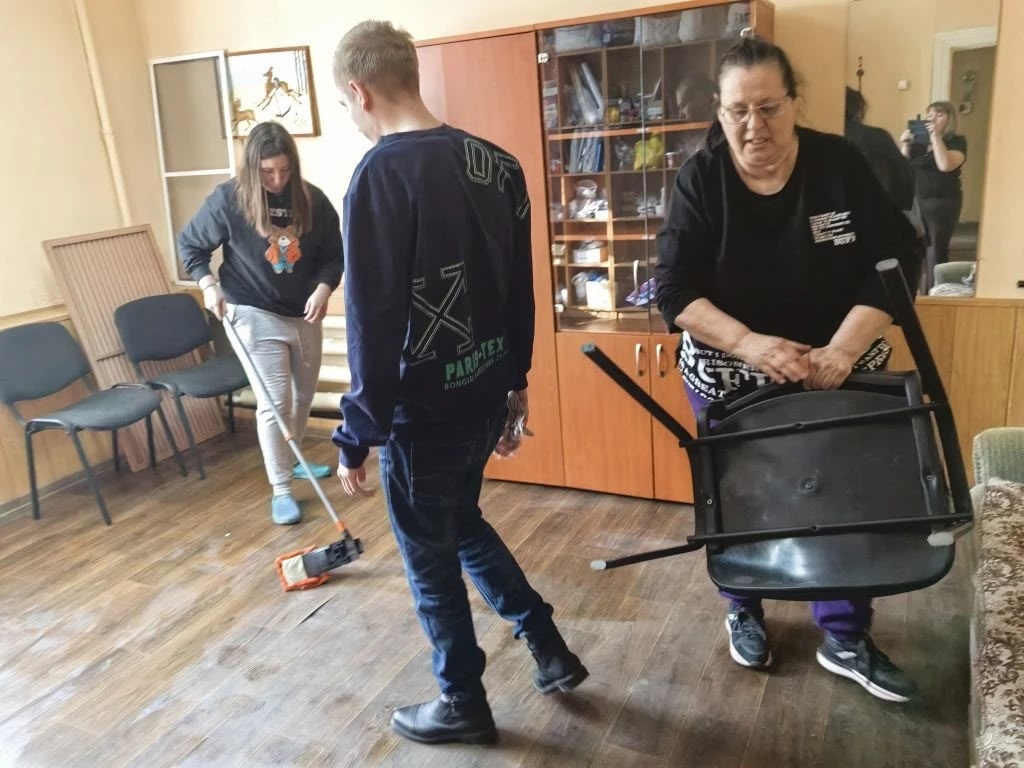 6 апреля при переезде на квартиру ребята, работающие по программе "Доступный труд", совместно с педагогами наводили порядок: мыли полы, окна, протирали пыль, расставляли по местам оборудование для дальнейших занятий.