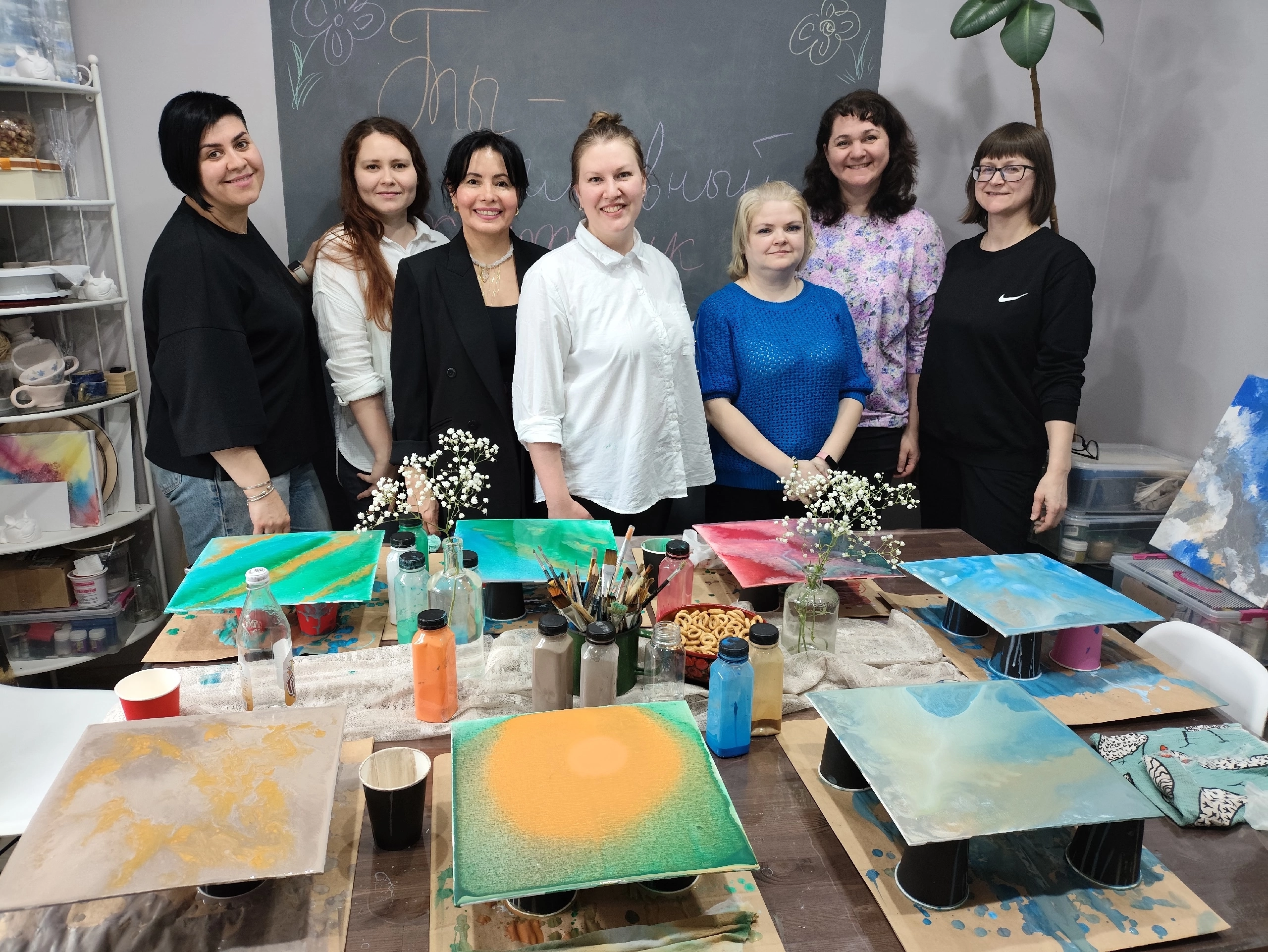 21 марта в уютной Арт-мастерской Карины собрались родители МО ВОРДИ г. Нягань и Октябрьского района Ханты-Мансийского автономного округа-Югры, чтобы погрузиться в волшебный мир Флюид Арт. Атмосфера творчества и вдохновения царила в мастерской, где каждый участник, независимо от возраста и опыта, мог почувствовать себя настоящим художником. Словно по волшебству, из обычных красок рождались уникальные, завораживающие полотна, наполненные жизнью и движением.