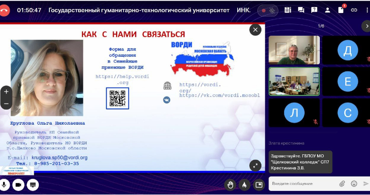 МО ВОРДИ г.о. Щёлково выступает с докладом в рамках круглого стола по инклюзивному образованию