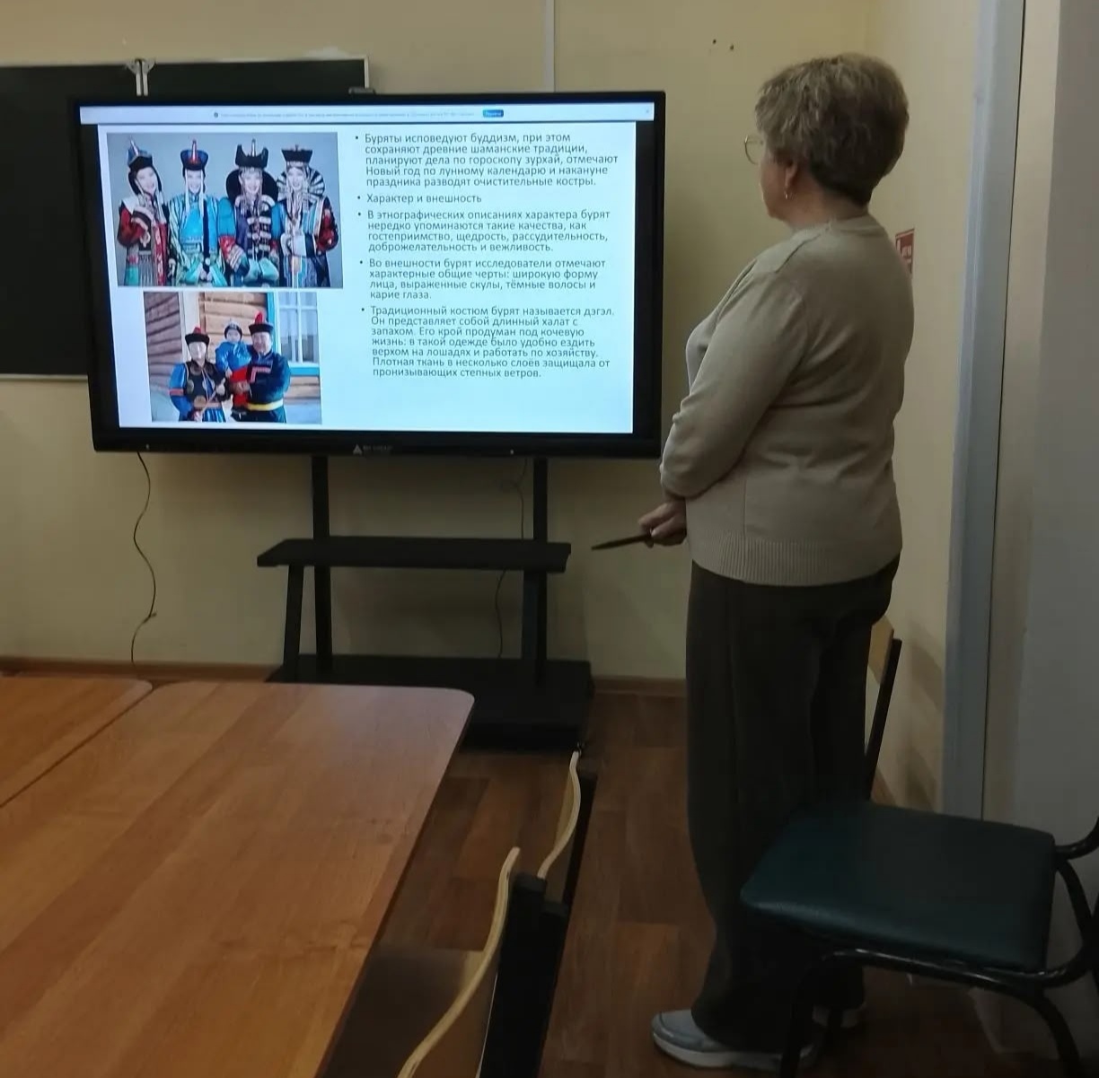 В рамках мероприятий, посвящённых Году единства народов России, член МО ВОРДИ г. Улан-Удэ Республики Бурятия рассказала о значимости сохранения культурного и исторического наследия Бурятии, а также о важности продвижения традиций за пределами республики. Особое внимание было уделено преемственности между поколениями и необходимости укреплять связи между народами России.