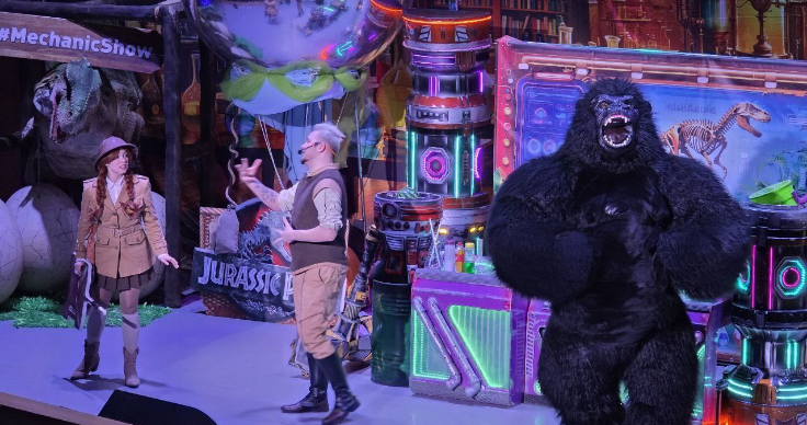 Зрители участвовали в увлекательном приключении вместе с Профессором Грюмом и его помощницей Шушу. Живые динозавры поражали воображение своими масштабами и реалистичностью. Дружелюбный робот-пёс Кибер развлекал всех своим весёлым характером. Великолепная горилла Конго покорила сердца зрителей своей грациозностью. Загадочный лабораторный монстр добавил таинственности происходящему.