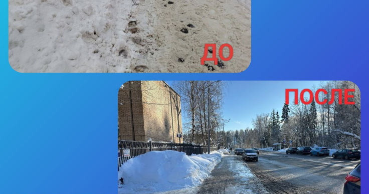 Теперь детям и родителям намного проще дойти до школы, как от автобусной остановки, так и тем, кто пользуется личным транспортом. Ведь почищена также и парковка вдоль Никольского проезда.