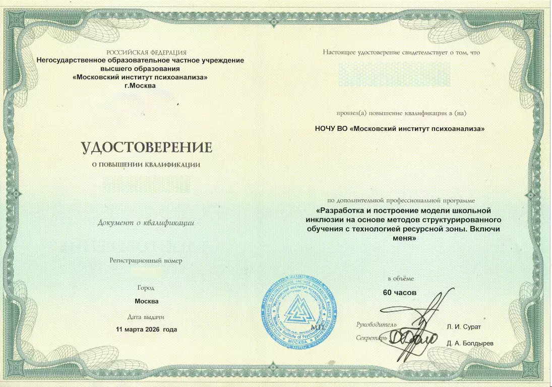 В рамках программы "ВОРДИ: Лига инклюзии" представители Региональных отделений ВОРДИ обучились по программе повышения квалификации «Разработка и построение модели школьной инклюзии на основе методов структурированного обучения с технологией ресурсной зоны. Включи меня» в НОЧУ ВО «Московский институт психоанализа». Представители РО ВОРДИ успешно завершили курс, повысили компетенции и теперь будут применять полученные знания на практике.