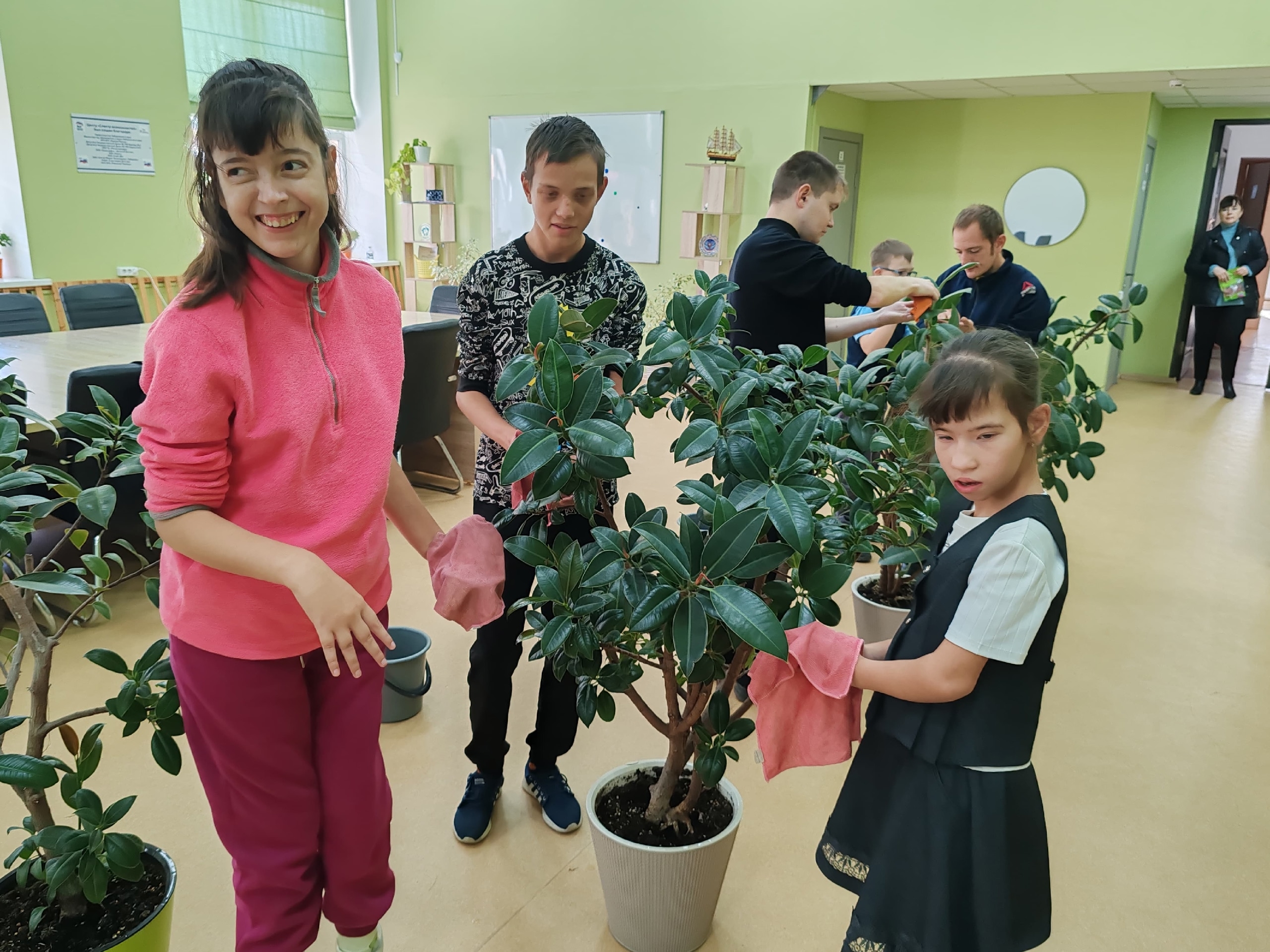 Ребята бережно протирали листья влажными тряпочками, рыхлили землю в горшках, а затем убрали за собой. Ну, и конечно, юные ботаники работали с грунтом, пересаживали растения и сажали укоренённые. Часть этих растений украсила окна Центра, а другая часть пойдёт на продажу, все деньги от которой пойдут на развитие мастерской и приобретение материалов для занятий.