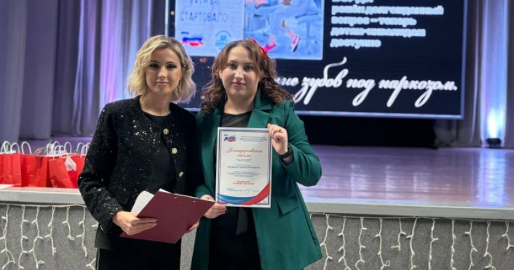 Председатель Регионального отделения ВОРДИ Елизавета Тагунова вручила Благодарственное письмо члену РО ВОРДИ Татьяне Ботниковой за её инициативу и значительный вклад в организацию стоматологического лечения детей. Татьяна Ботникова выступила с инициативой в Департамент здравоохранения и оказала содействие в привлечении нужных структур, что позволило реализовать важный социальный проект, и благодаря этим усилиям в региональном здравоохранении произошли важные изменения.