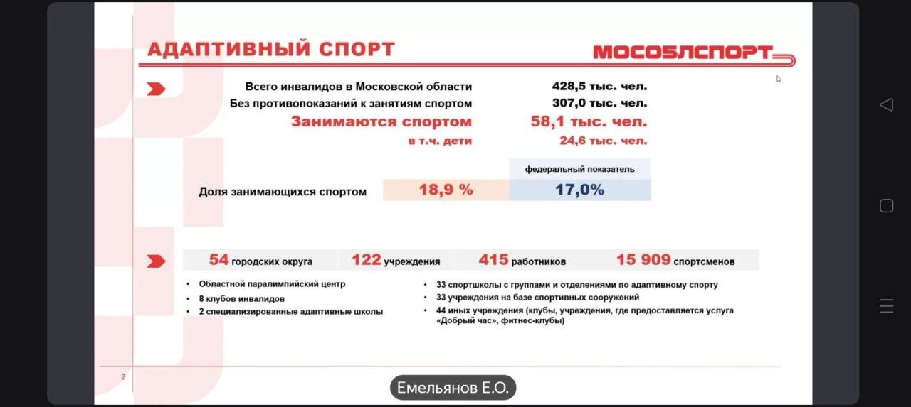 Также представители РО ВОРДИ приняли участие в обсуждении вовлеченности спортсменов с инвалидностью и мерах их поддержки (стипендии, премии), доступности спортивной инфраструктуры в Московской области, обучения медиков по Протоколу сообщения диагноза, об опыте реализации направления «Ранняя помощь» (Распоряжение Правительства МО от 18.10.2022 № 1016 РП), проектов по сопровождаемому проживанию, в том числе инициативы Фонда «Одной дороги». Были намечены конкретные шаги по реализации инициатив и улучшению поддержки людей с инвалидностью в Московской области.