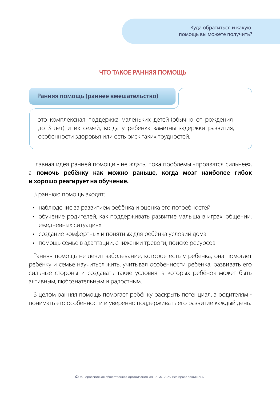 раннюю помощь