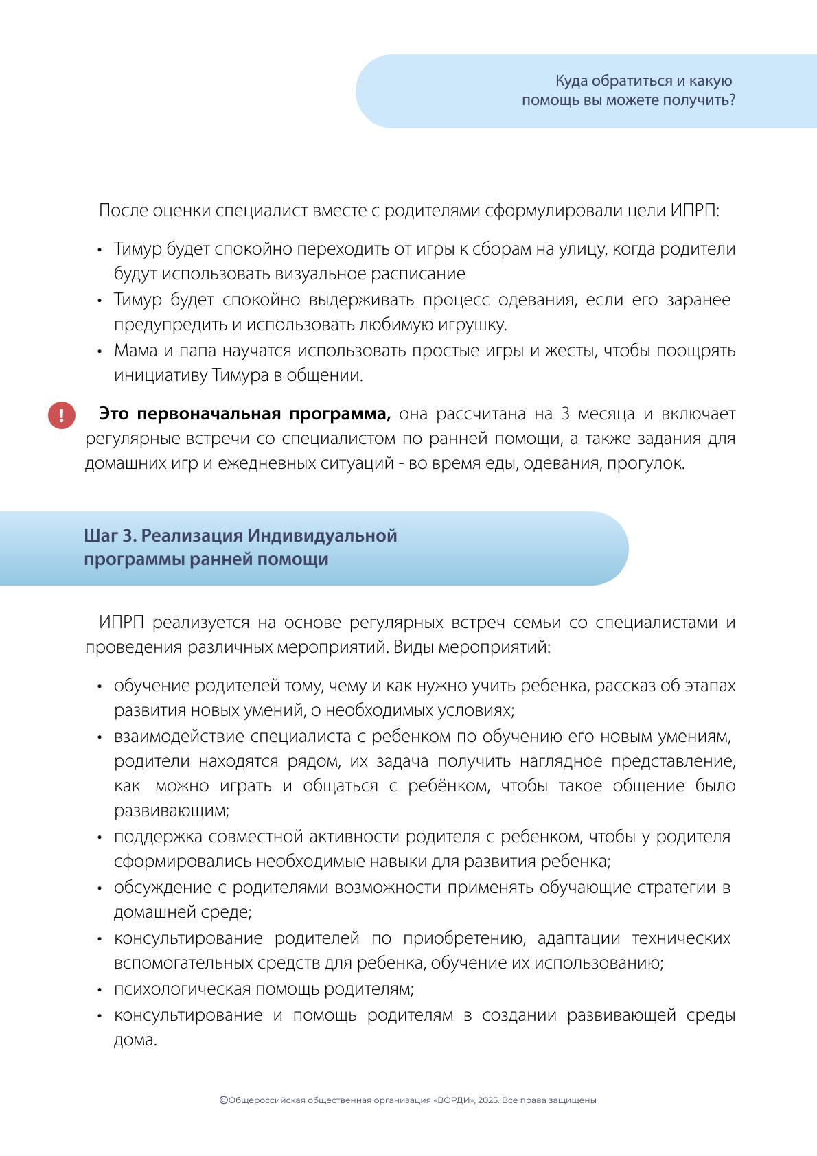 Шаг 3. Реализация Индивидуальной программы ранней помощи