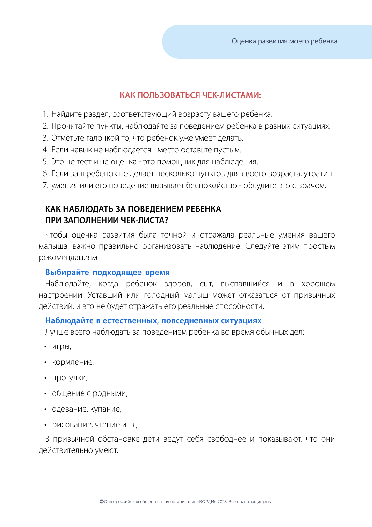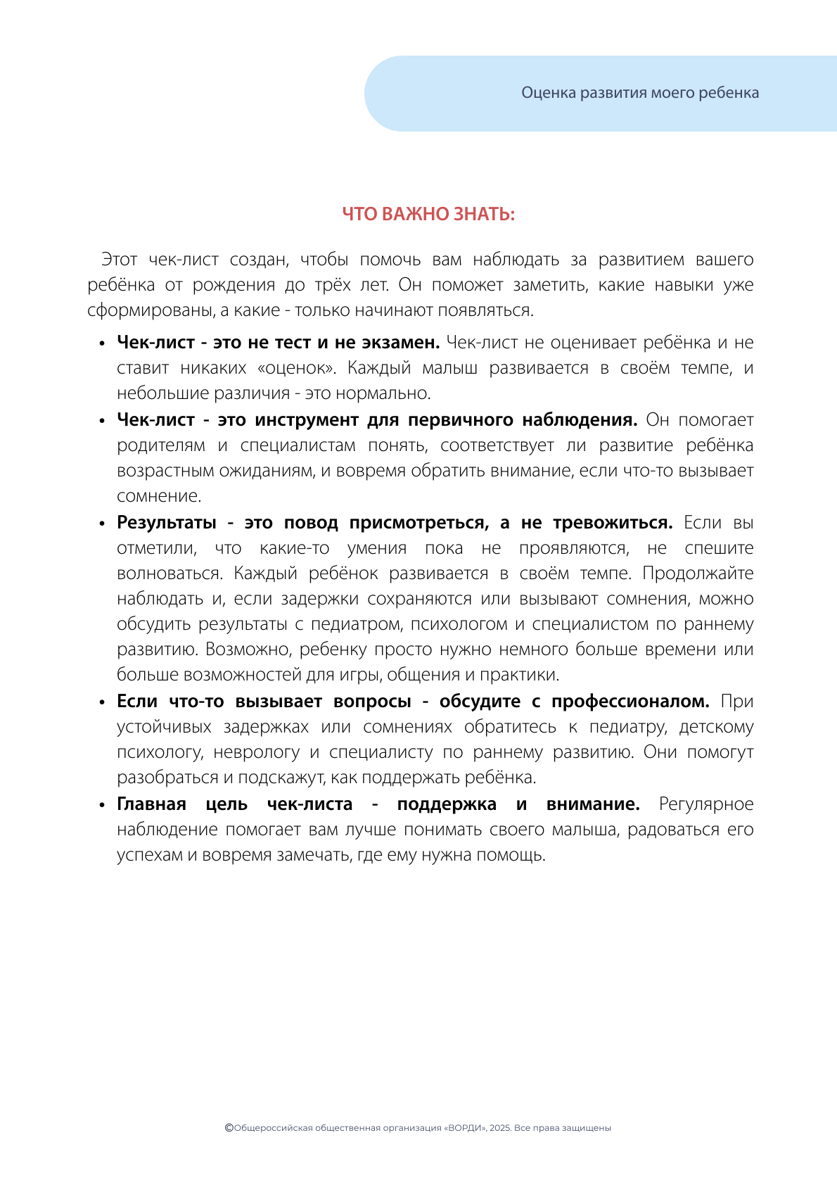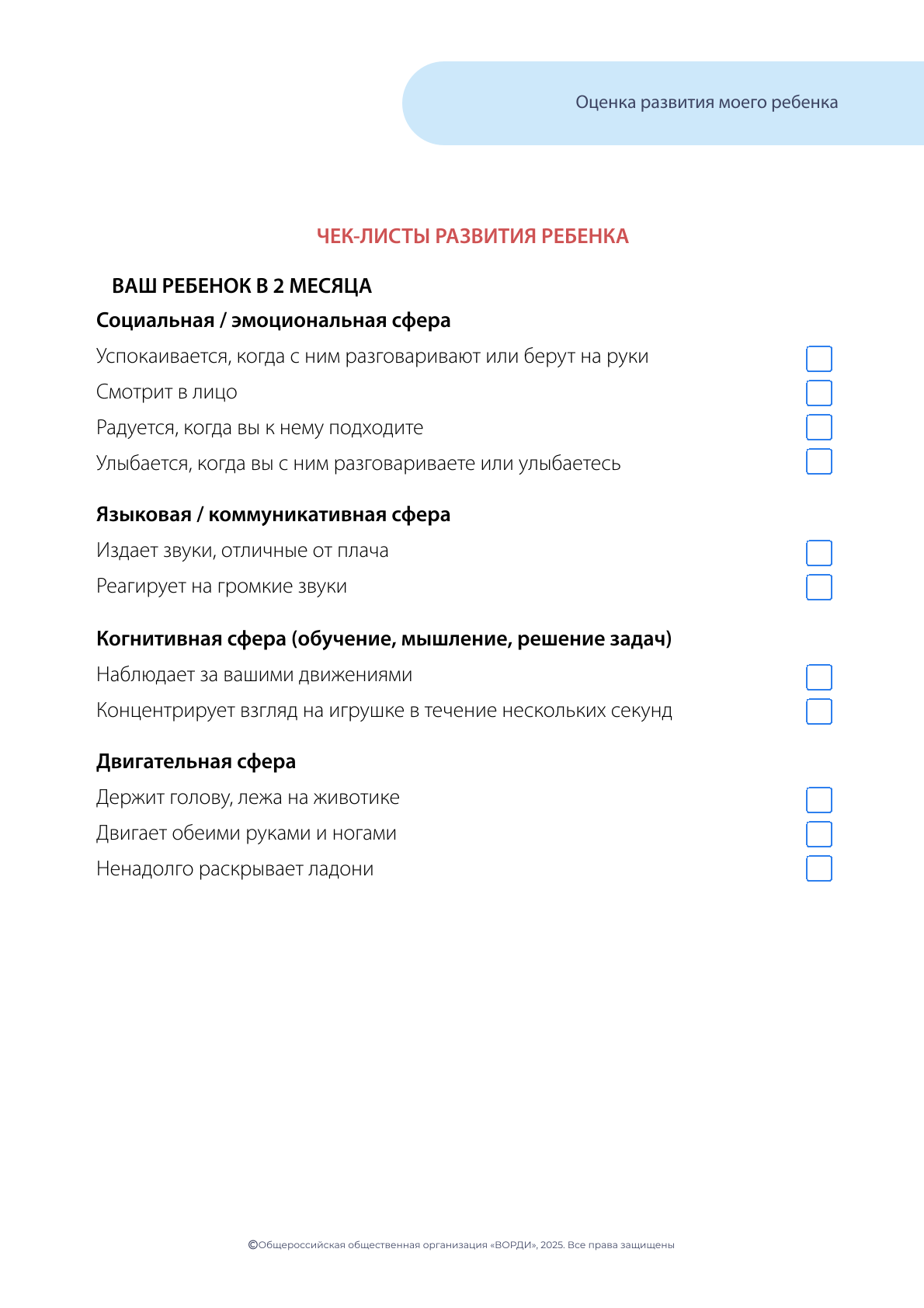 Использование простых чек-листов - это способ следить за тем, соответствует ли развитие ребенка возрастным нормам и вовремя обратиться за помощью, если что-то вызывает беспокойство.