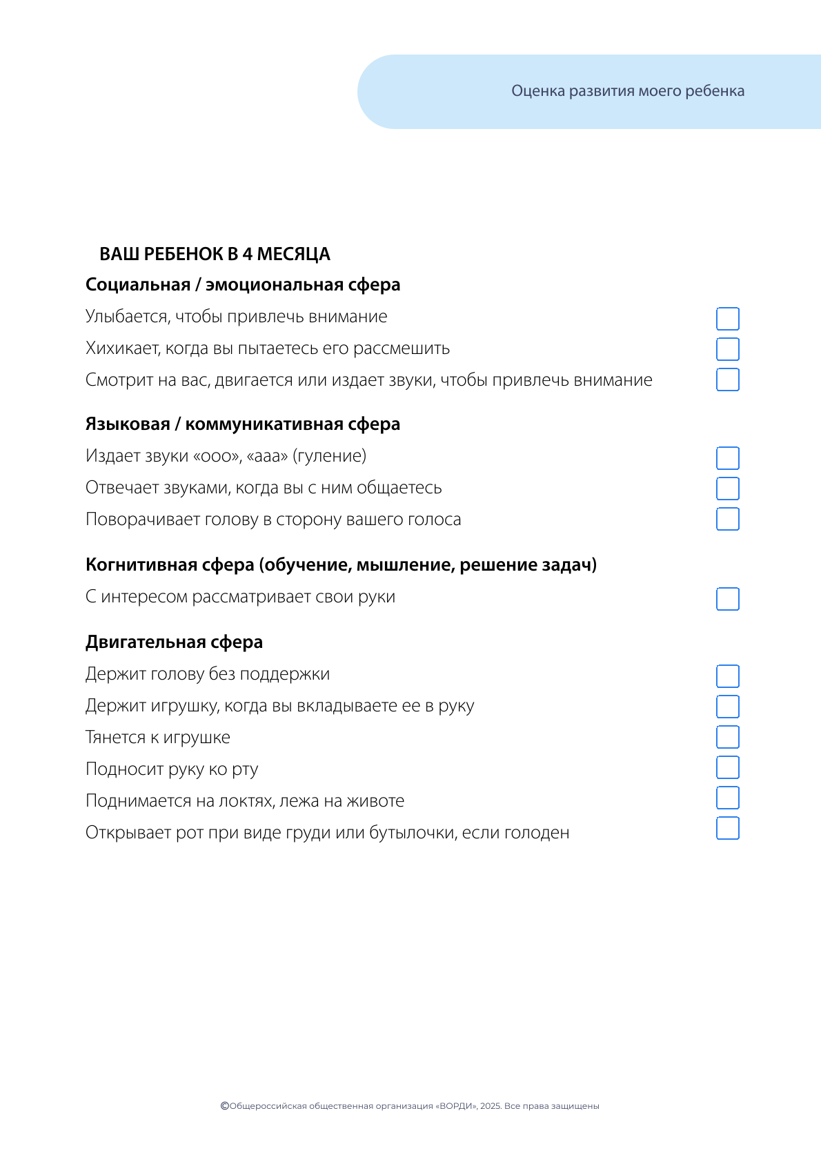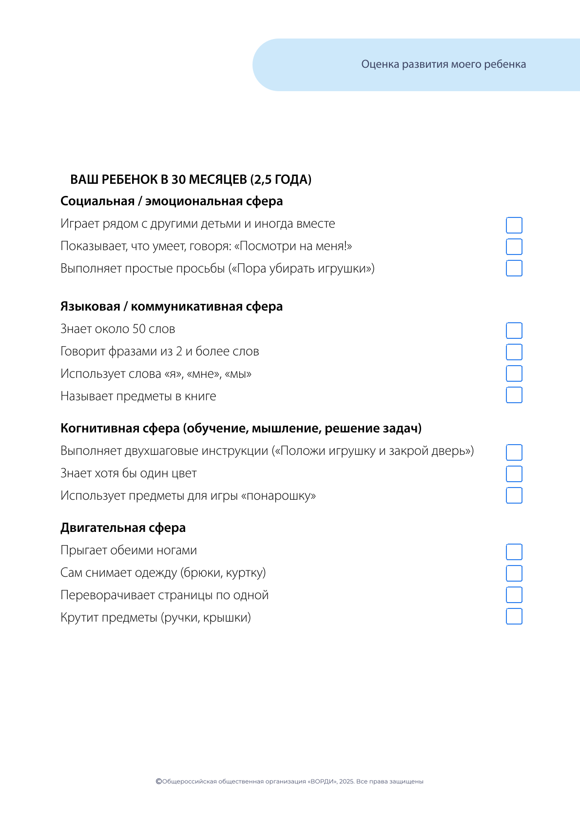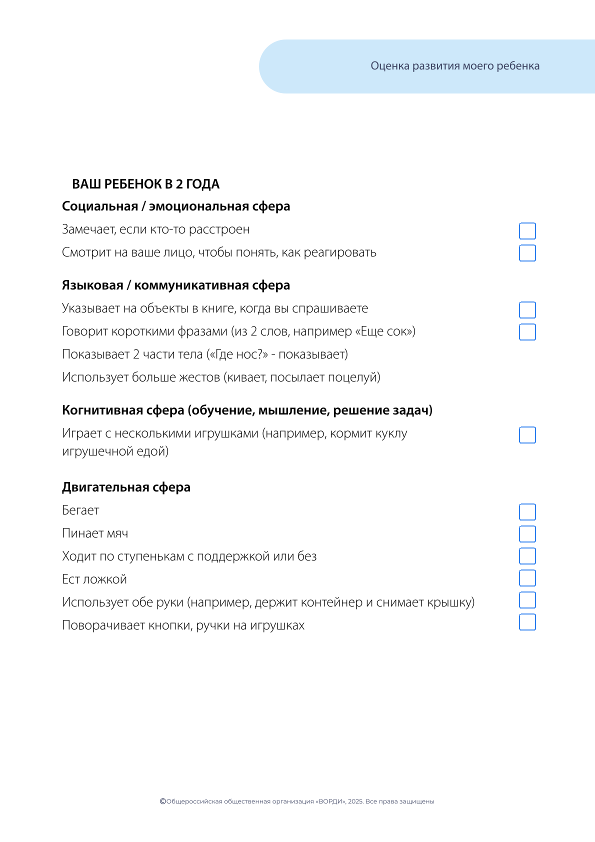 Использование простых чек-листов - это способ следить за тем, соответствует ли развитие ребенка возрастным нормам и вовремя обратиться за помощью, если что-то вызывает беспокойство.