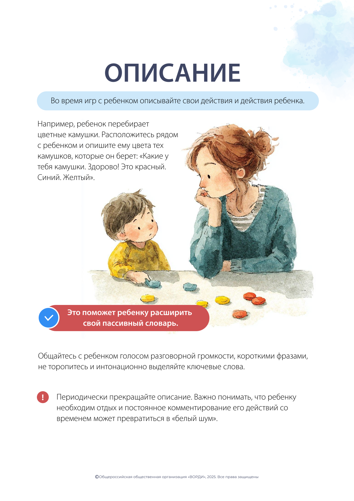 Если Вы получили результат об отсутствии у ребенка признаков аутизма, Вы можете продолжать помогать развитию ребенка самостоятельно в домашней среде.