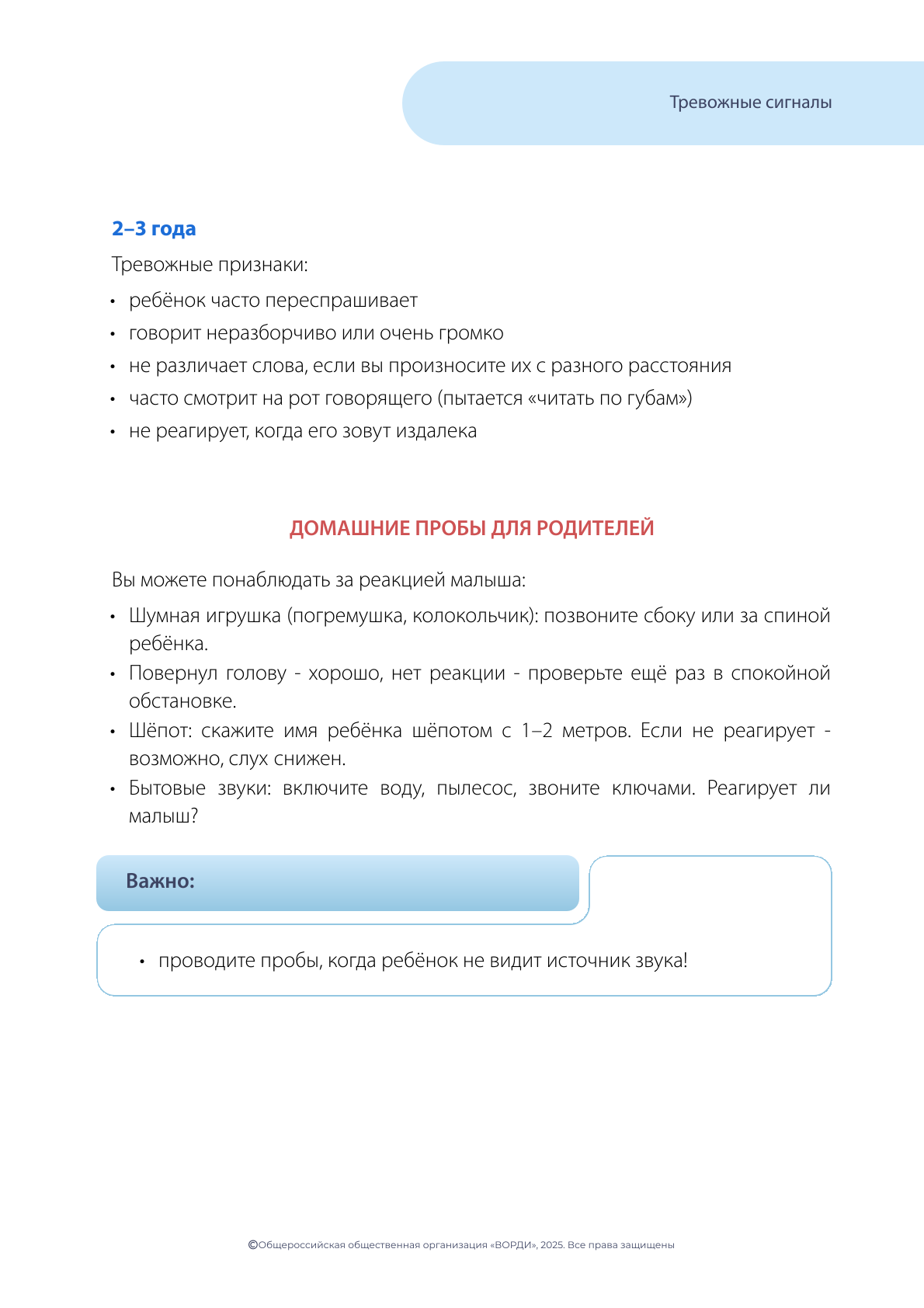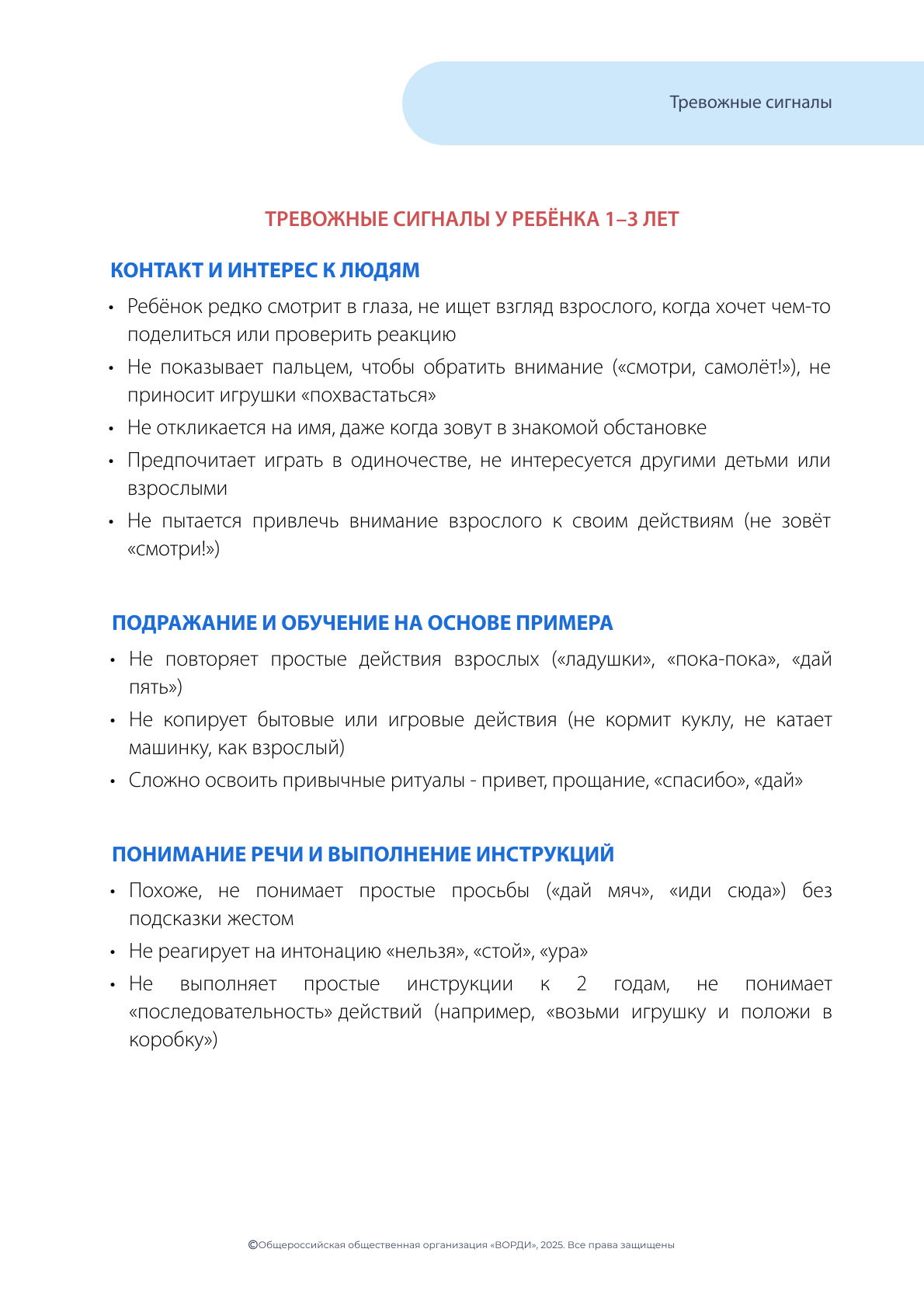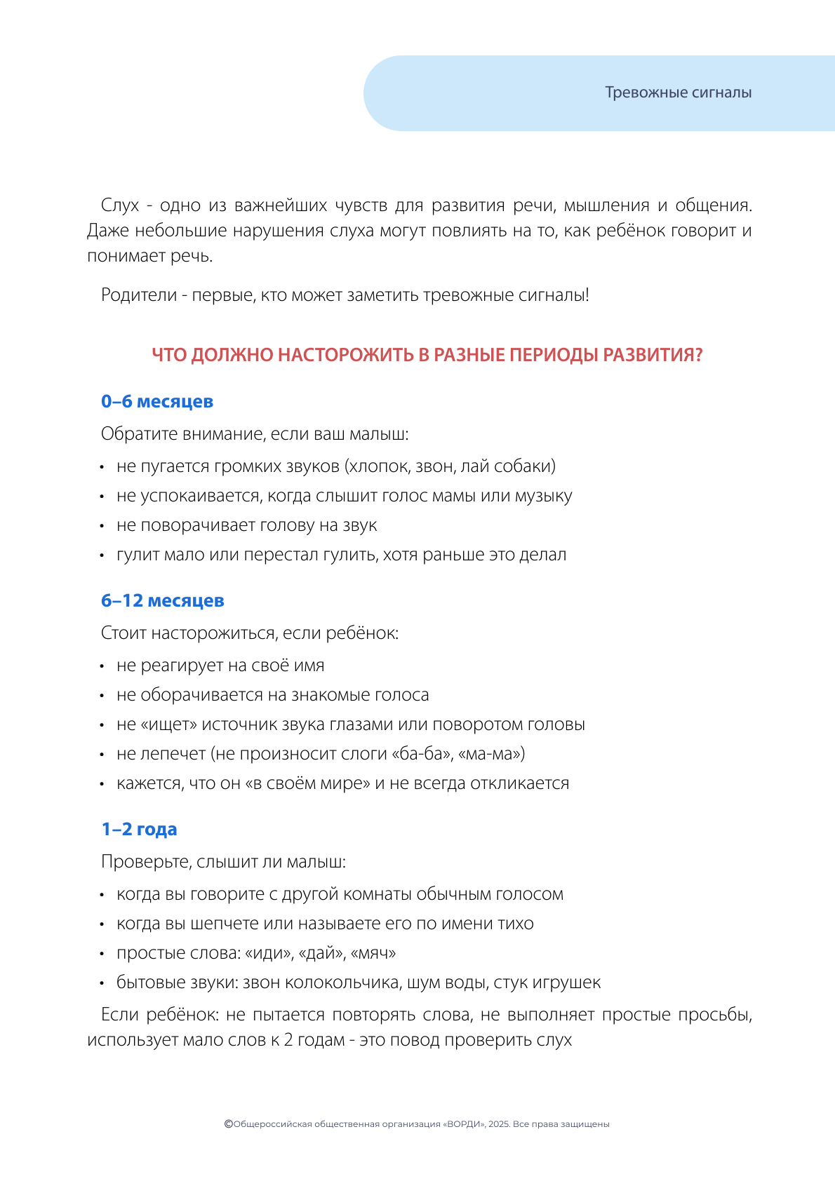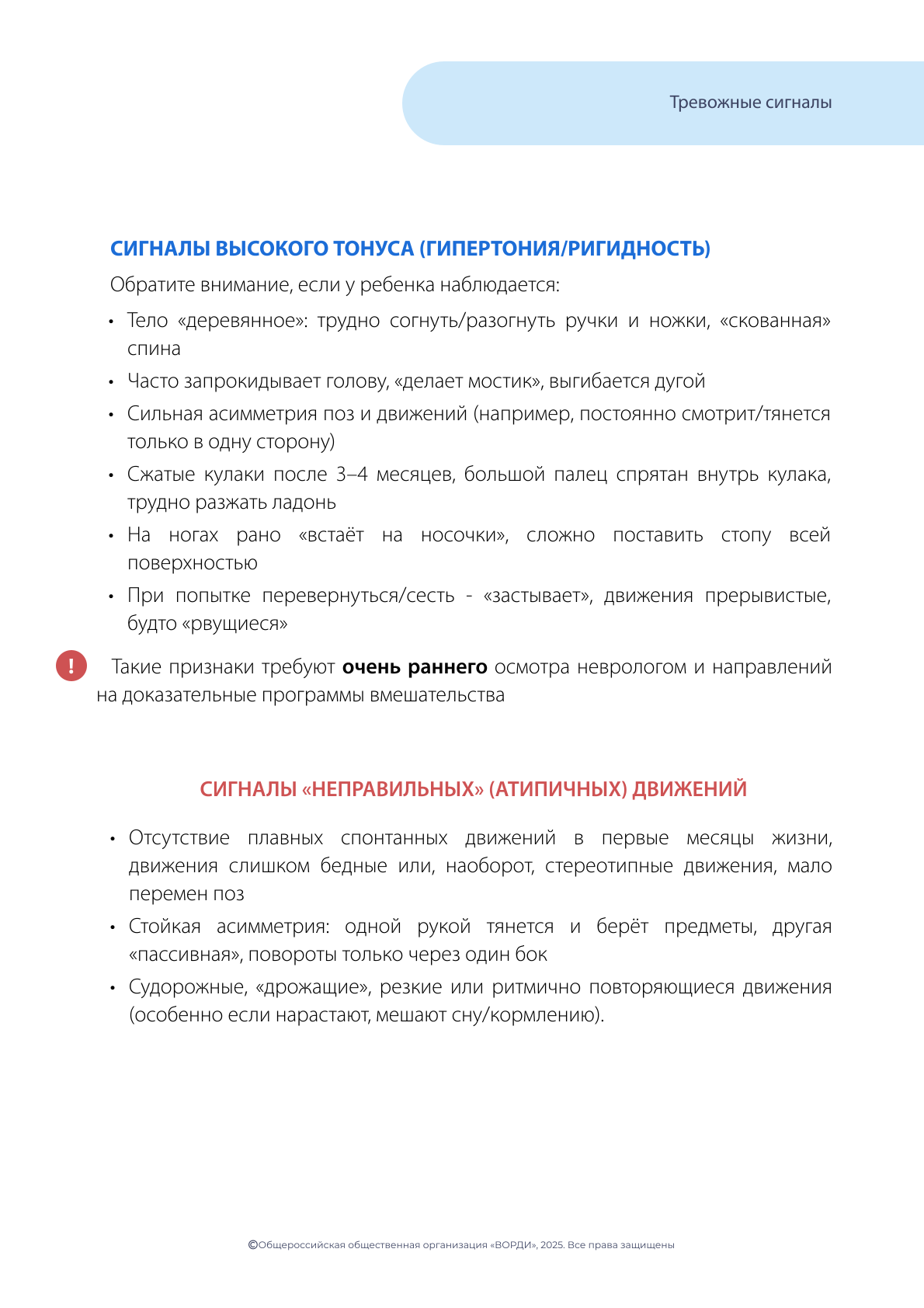 Не откладывая, обратитесь в Службу ранней помощи или к своему лечащему врачу, если вы заметили вышеуказанные признаки!