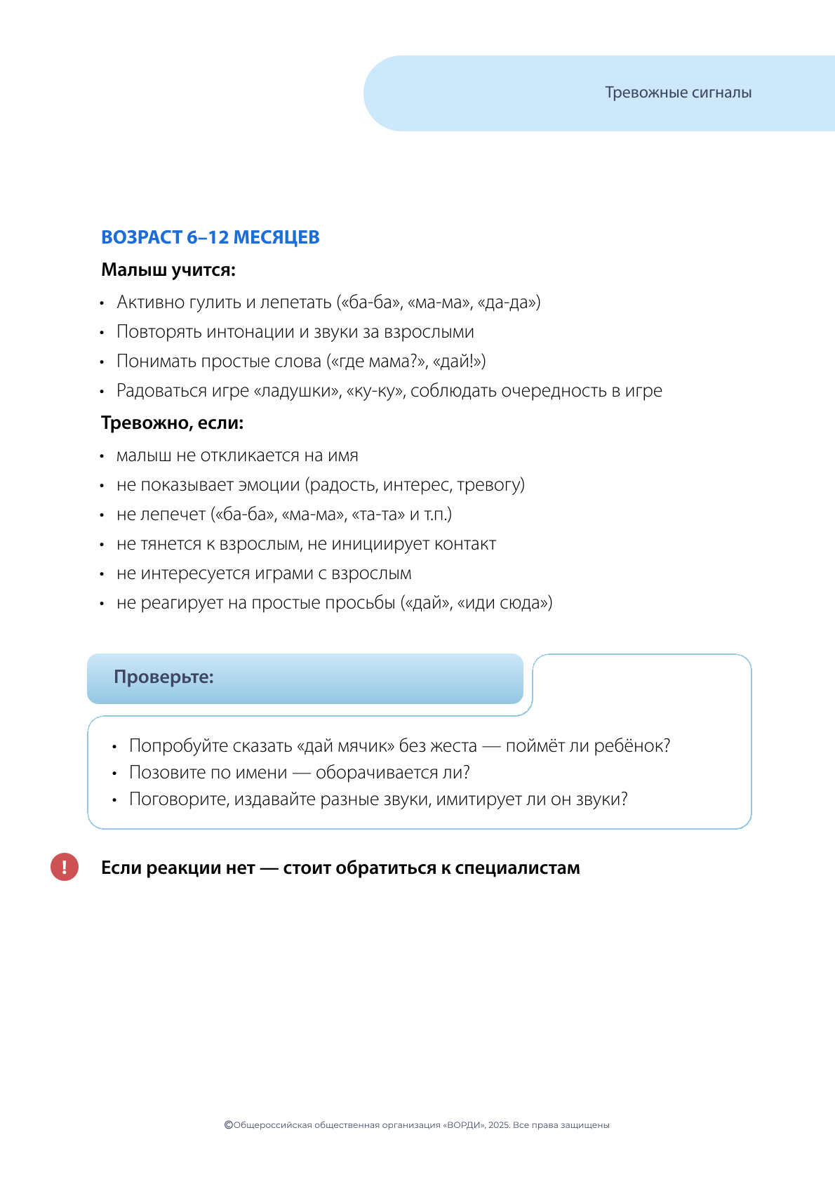 Тревожные признаки в 12 месяцев !